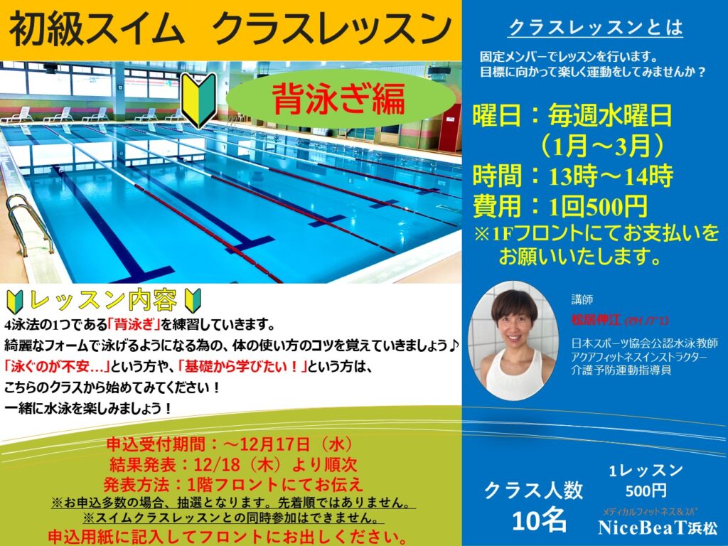 2026年1月~3月のスイムクラスレッスン申込開始しております。