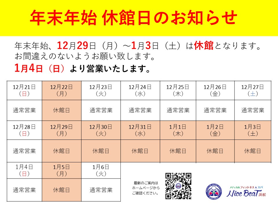 年末年始、12月29日(月)~1月3日(金)まで、休館となります。